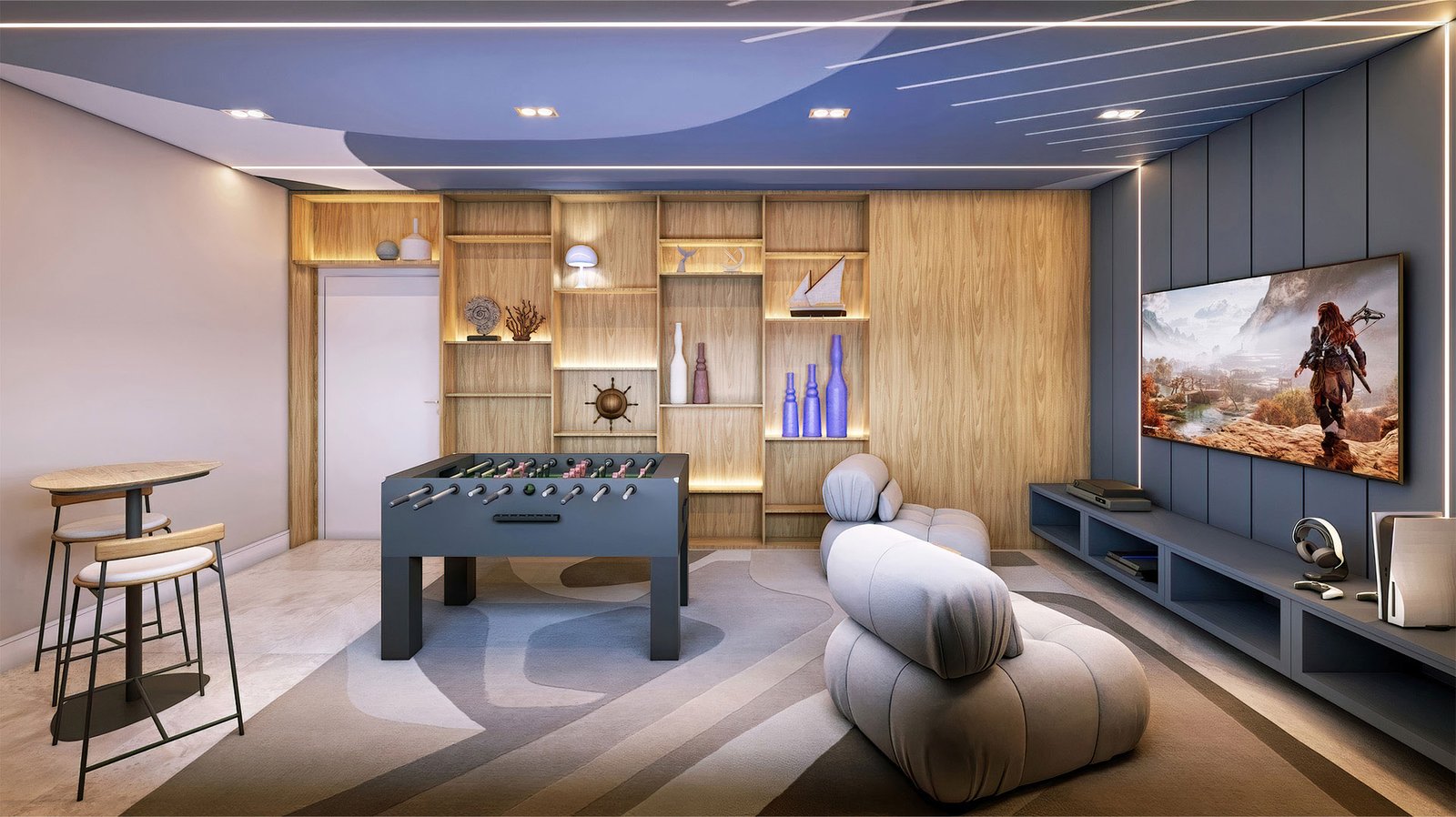 O empreendimento contará com 15 itens de lazer, sendo no rooftop, térreo, 1º e 2º sobressolos. Todas as áreas equipadas e decoradas.