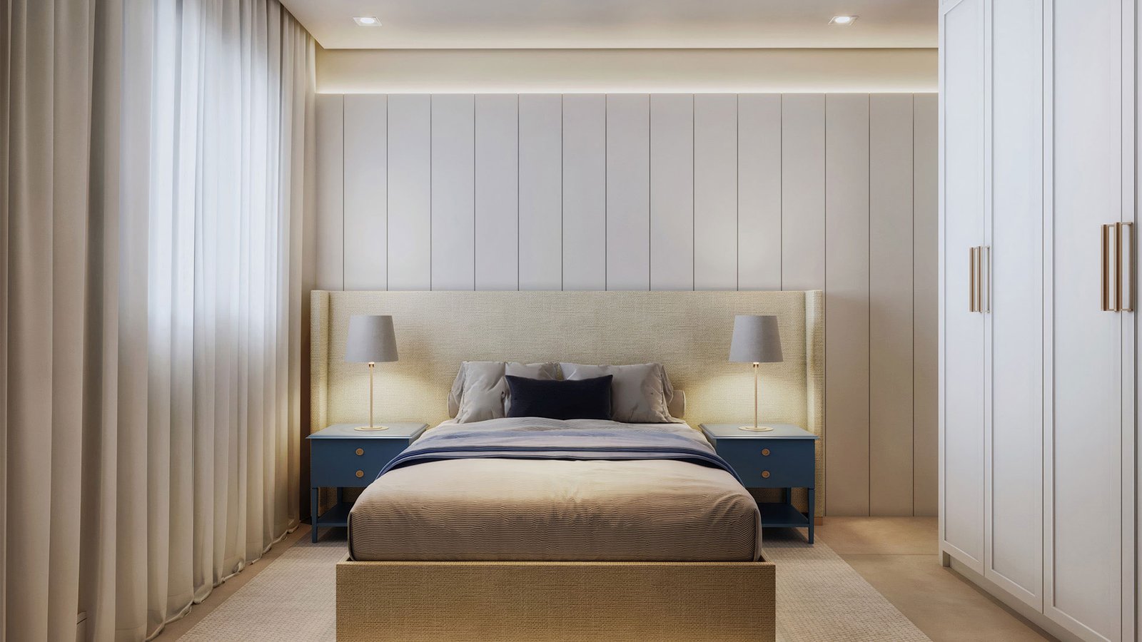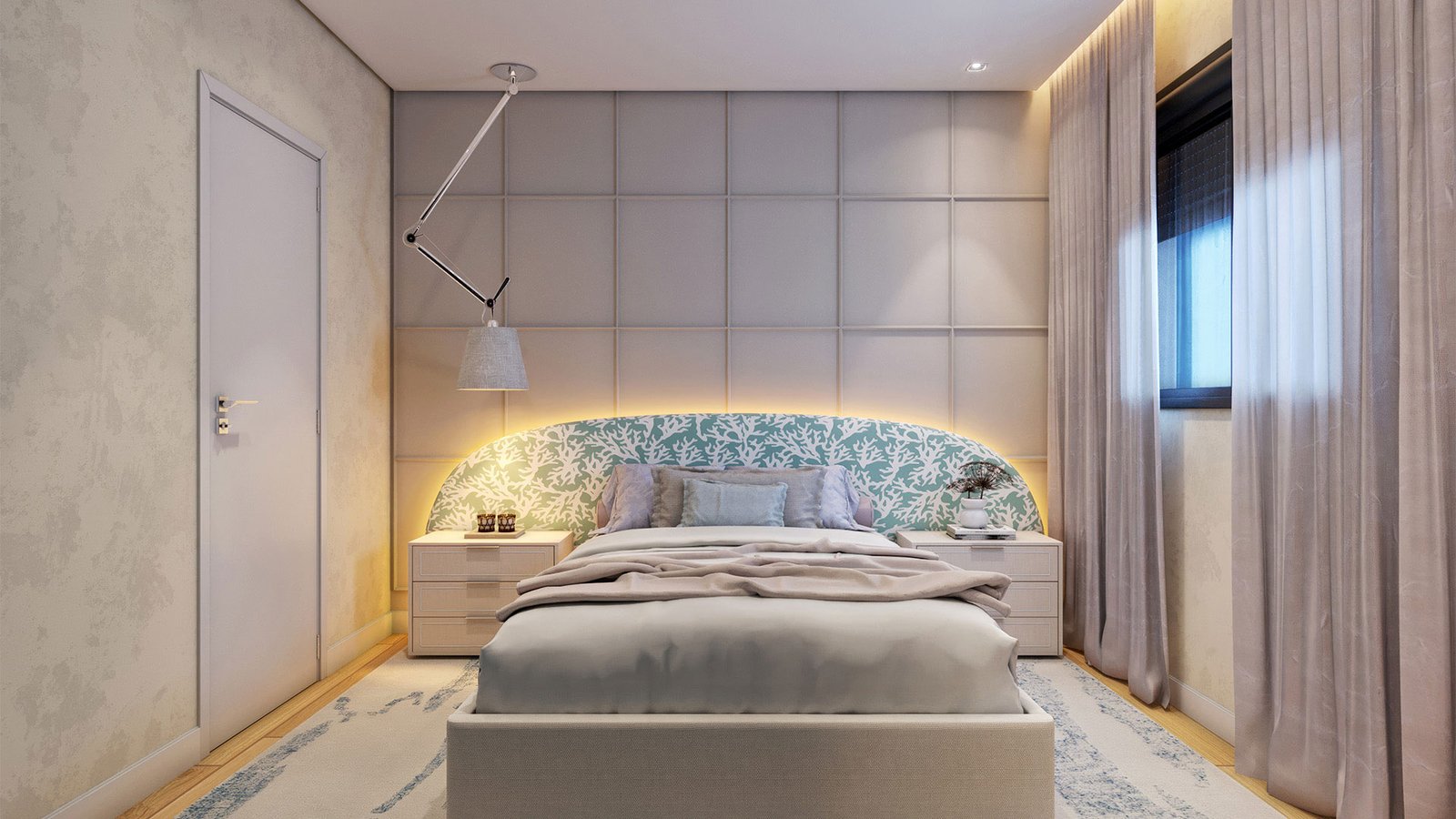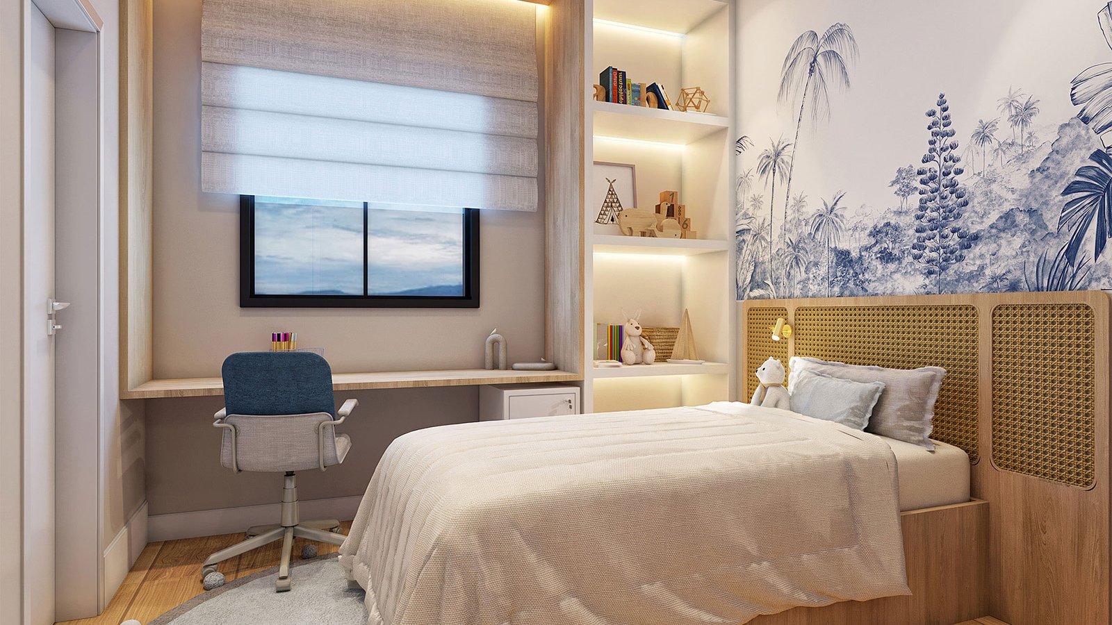 Nos dormitórios serão instaladas amplas janelas com persianas de enrolar, permitindo maior aproveitamento da iluminação solar. Exceto no dormitório 3.