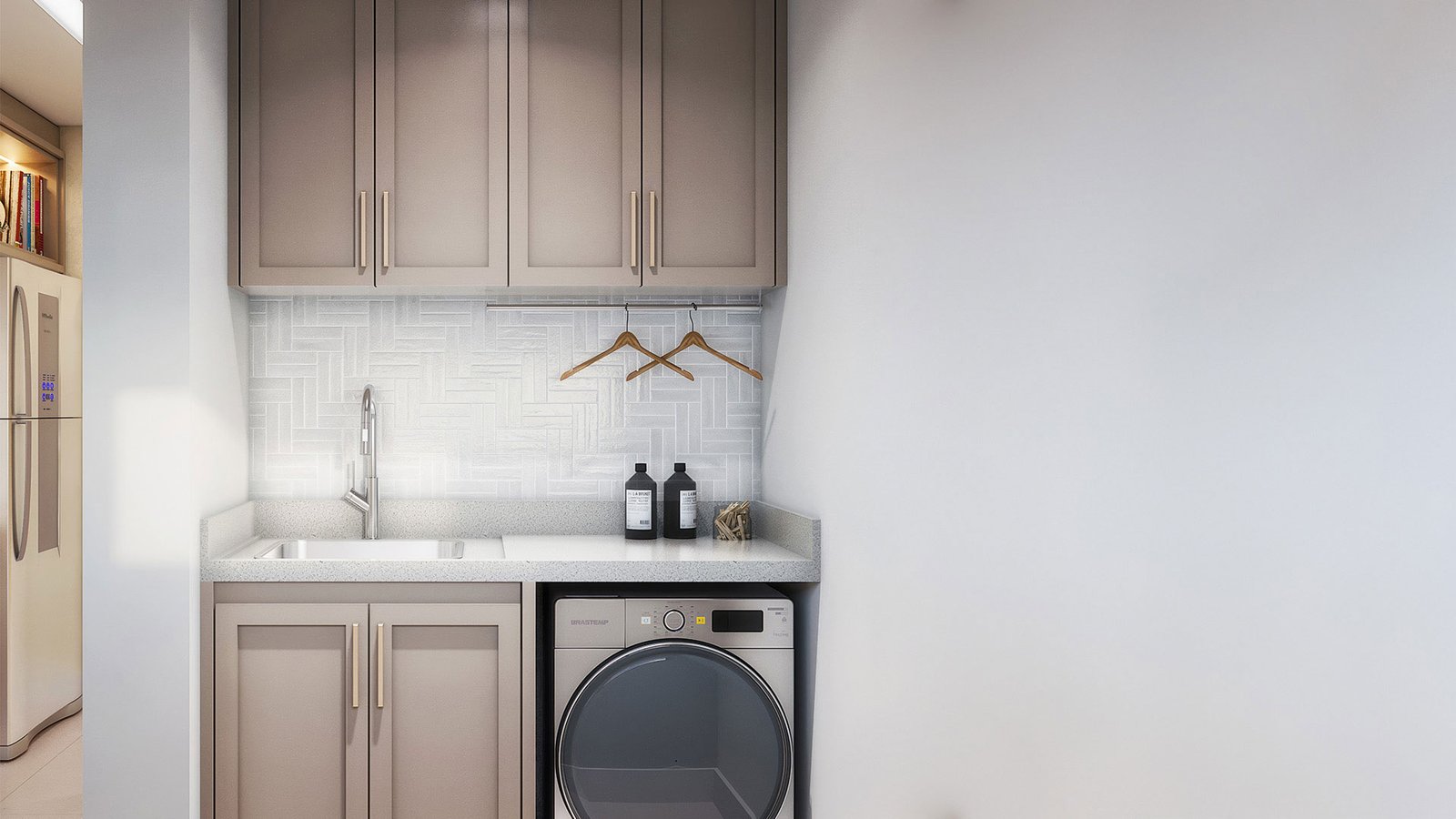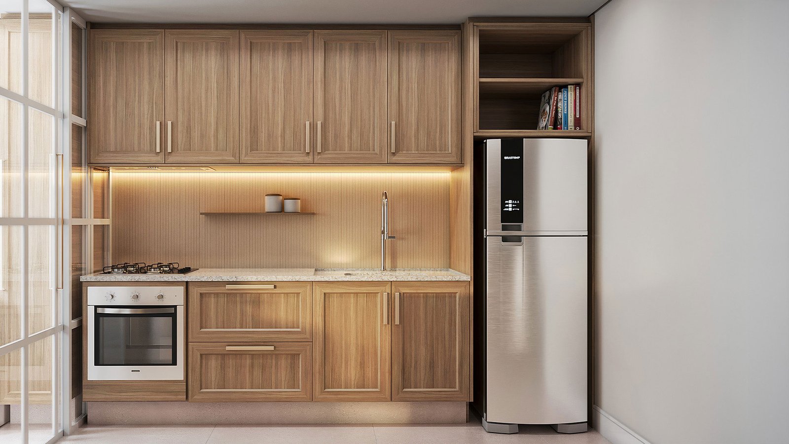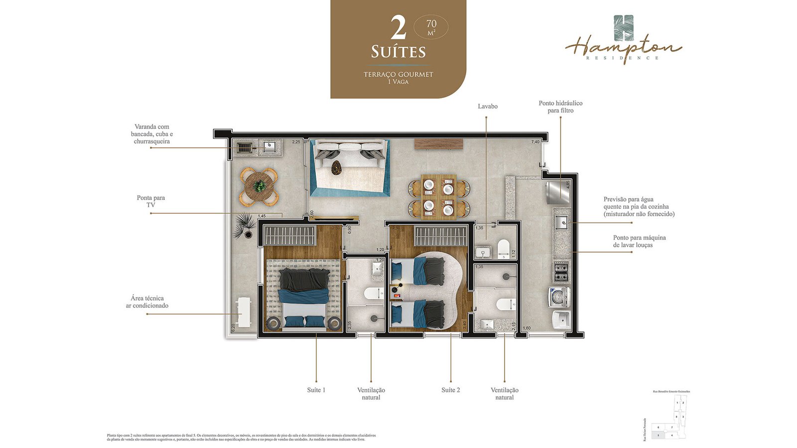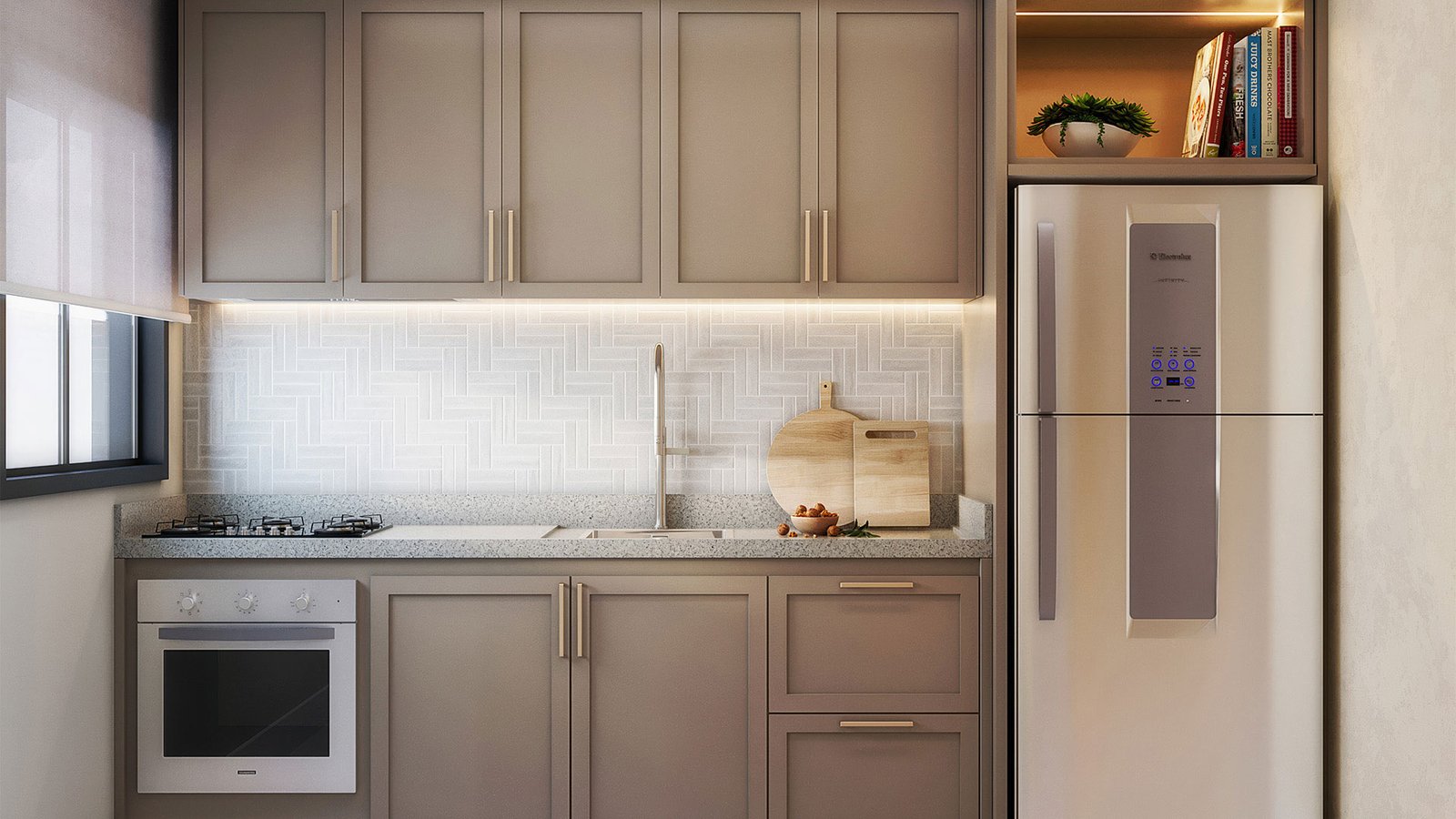 As varandas do HAMPTON RESIDENCE serão entregues com bancada, cuba e ponto elétrico.