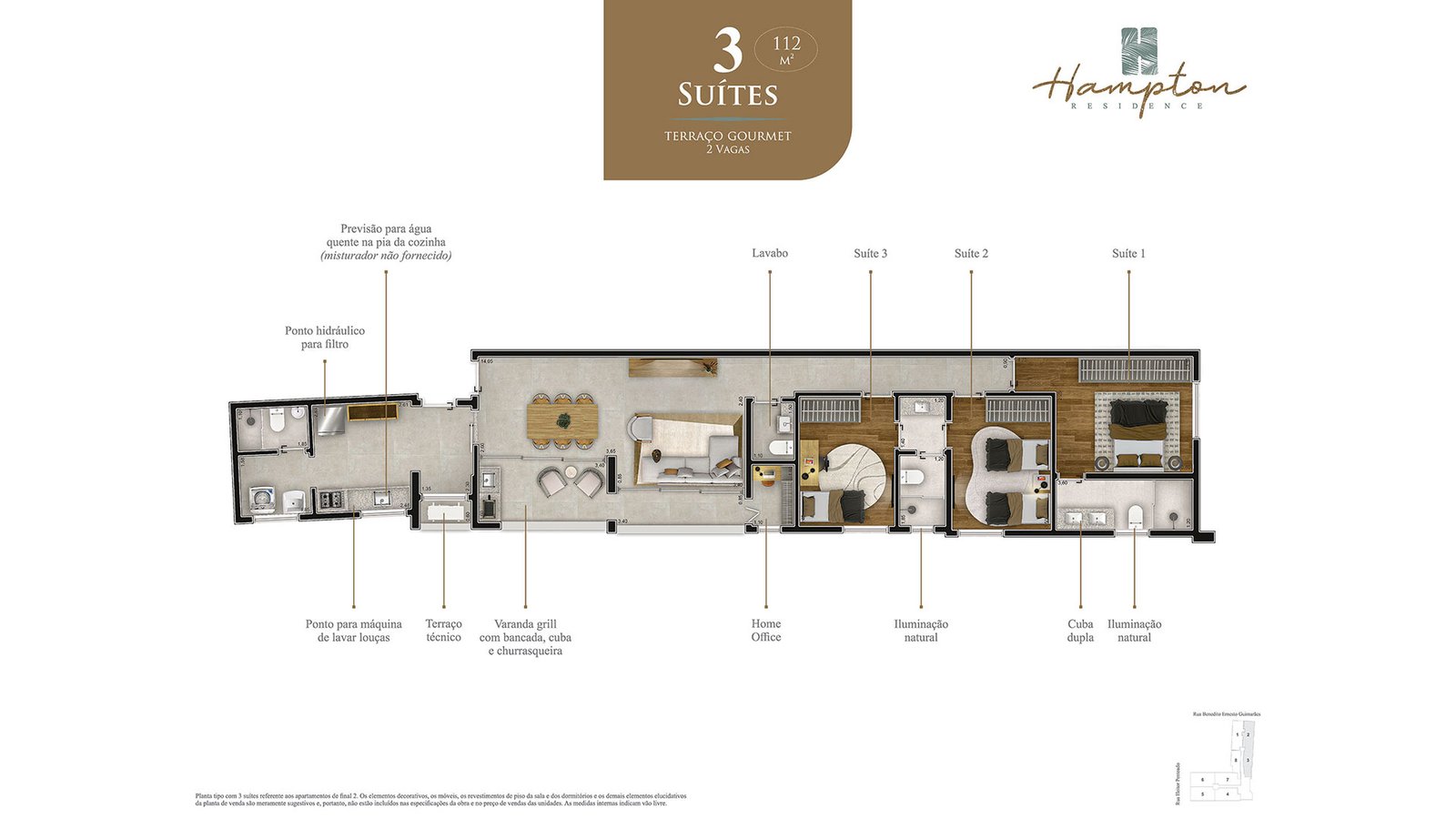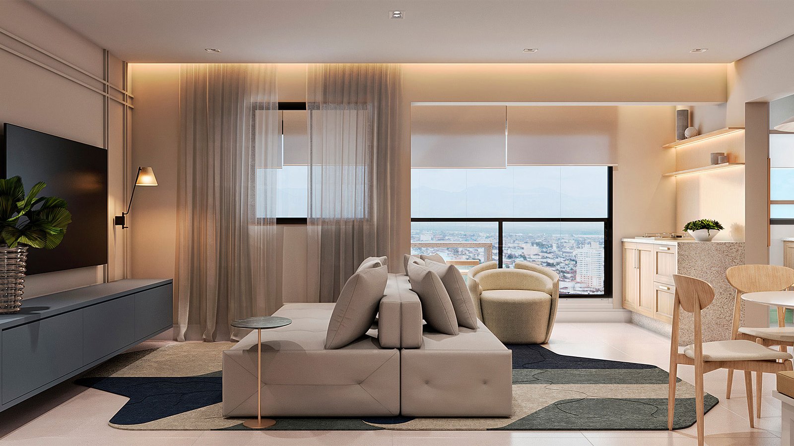 As áreas comuns internas no HAMPTON RESIDENCE foram projetadas para receber o máximo de incidência de iluminação natural, evitando, assim, o consumo excessivo de energia.
