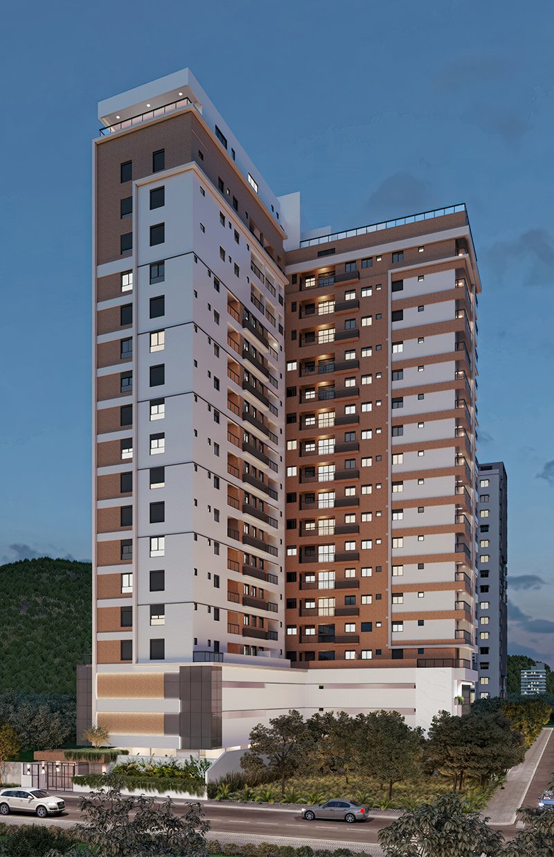 Torre única em um terreno de 1.152m². O prédio será entregue com acabamento externo pastilhado